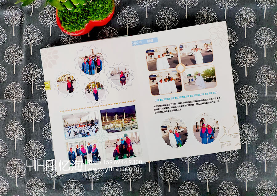 将这次朝觐历程,在朝觐的每个地方,我们都留影纪念!这是跨越千里的洗礼过程,让我们将这次盛大的典礼记录在相册里,永远的珍藏!在设计纪念册的过程中,注意到宗教信仰,画面元素大多都是以宗教元素为主,才能体现这次朝觐的意义。如果你也想要一本独一无二的纪念册,就到我们忆海文化设计,专业的团队,靓颖的设计,会让你眼前一亮!