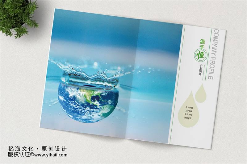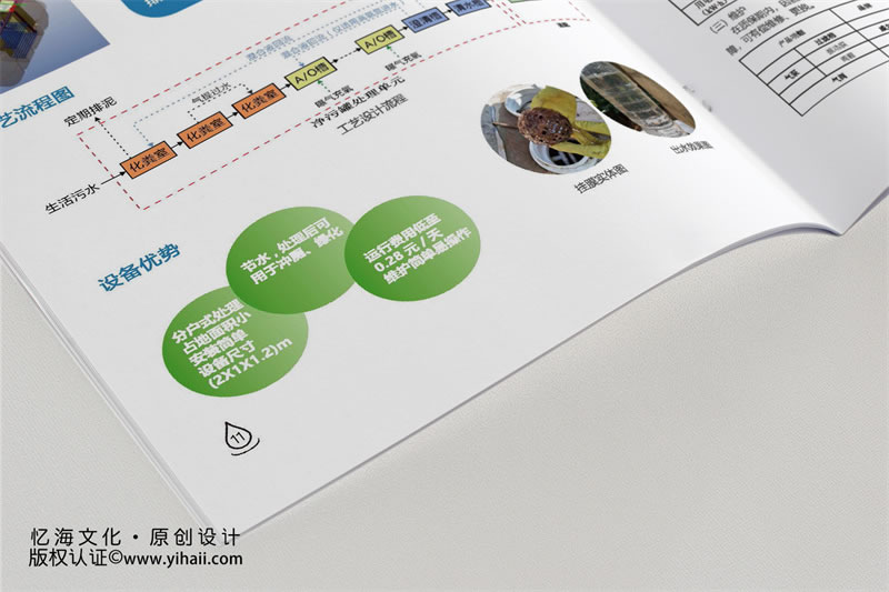 这本环境科技公司画册是由忆海文化设计完成的,从画册策划、设计、印刷成册,每一个环节都需要精准的准备,才能让画册发挥出最大的效果。画册采用了骑马钉的装订方式,内页纸张为200克铜板印刷,让画册有了更好的色彩呈现。